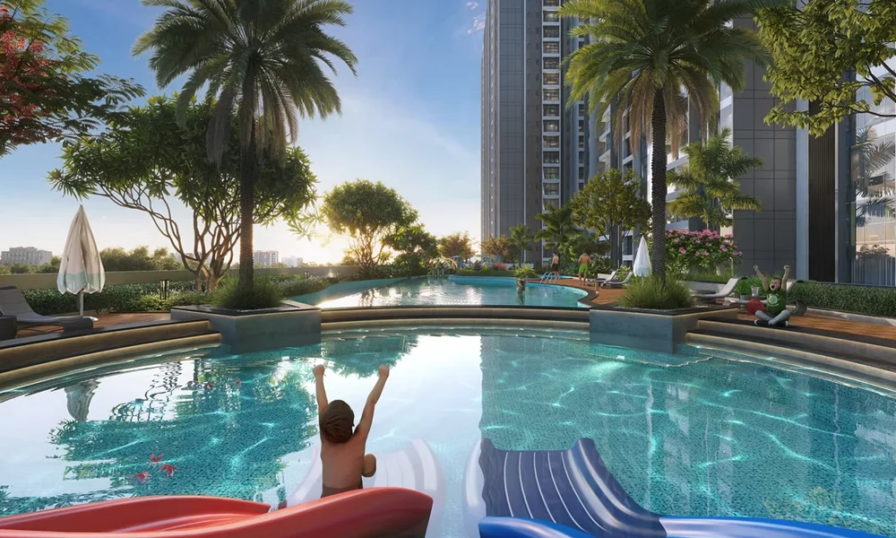 The stunning elevation comprises a grand entrance lobby and cutting-edge safety features. It boasts 40+ lifestyle amenities, including a landscaped garden, a swimming pool, a gym, a kids’ play area, a banquet hall, etc.